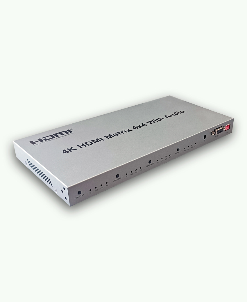 ماتریکس 4×4 HDMI سیترو مدل SITRO HDMX03-V1.4 یک راهحل تخصصی برای توزیع و مدیریت چندین سیگنال تصویری در محیطهای حرفهای است؛ دستگاهی که امکان اتصال چهار ورودی HDMI و چهار خروجی HDMI را به صورت همزمان فراهم میکند و به کاربران اجازه میدهد هر ورودی دلخواه را روی هر خروجی یا حتی چند خروجی بهطور همزمان هدایت کنند. برخلاف اسپلیترهای معمولی که تنها یک ورودی را بین چند خروجی تکرار میکنند، این ماتریکس آزادی کامل در ترکیب و مسیربندی تصویر را ارائه میدهد؛ چیزی که آن را به ابزاری ضروری برای محیطهای کنترل چند نمایشگر، کنفرانسها، سیستمهای نظارت تصویری و حتی نمایشگرهای تبلیغاتی تبدیل کرده است. طراحی محکم فلزی و چینش حرفهای پورتها باعث میشود HDMX03-V1.4 عملکردی پایدار در استفادۀ طولانیمدت داشته باشد. این مدل از استاندارد HDMI نسخه 1.4 پشتیبانی میکند و قادر است تصویر را با رزولوشن 4K@30Hz با وضوح رنگ و جزئیات بالا منتقل نماید.
