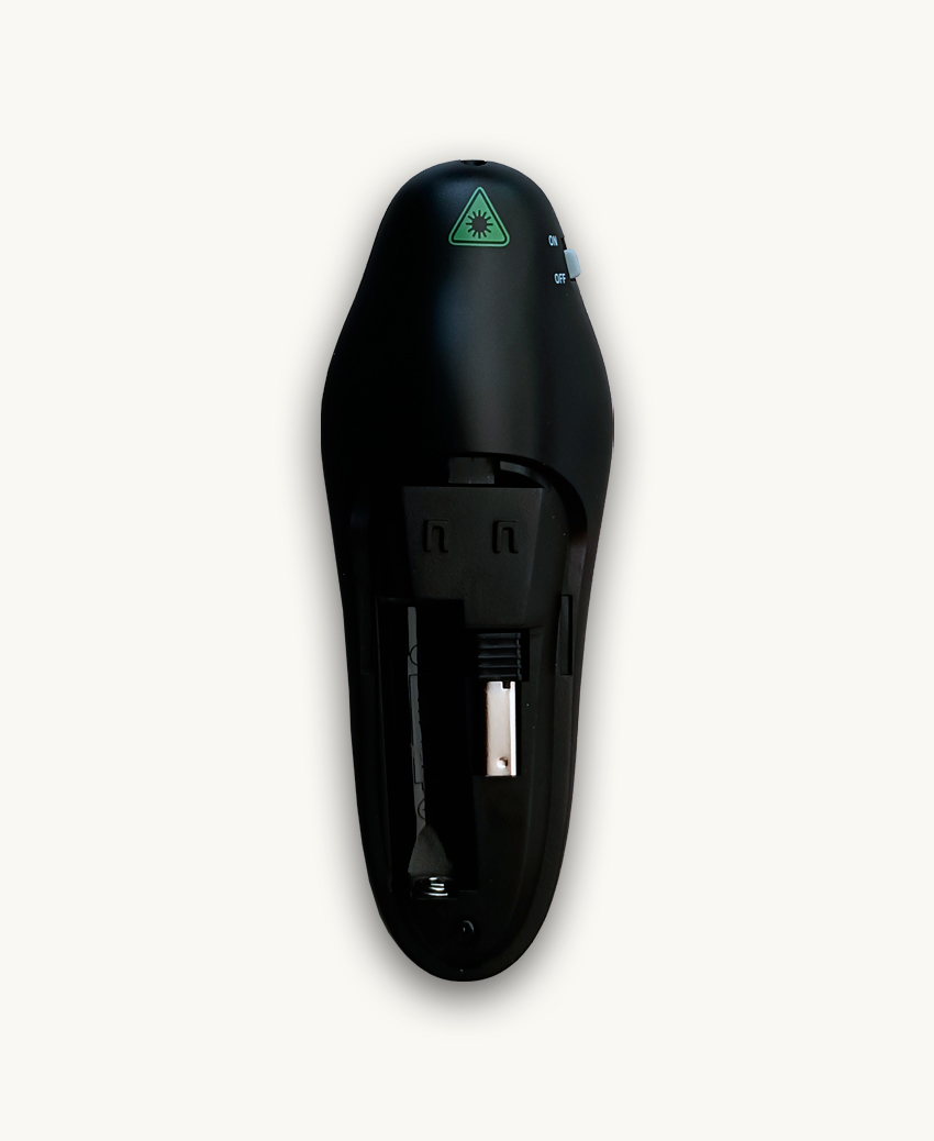 این پرزنتر با یک باتری نیم قلمی (AAA) کار میکند که به دلیل مصرف پایین، مدت طولانی قابل استفاده است.
