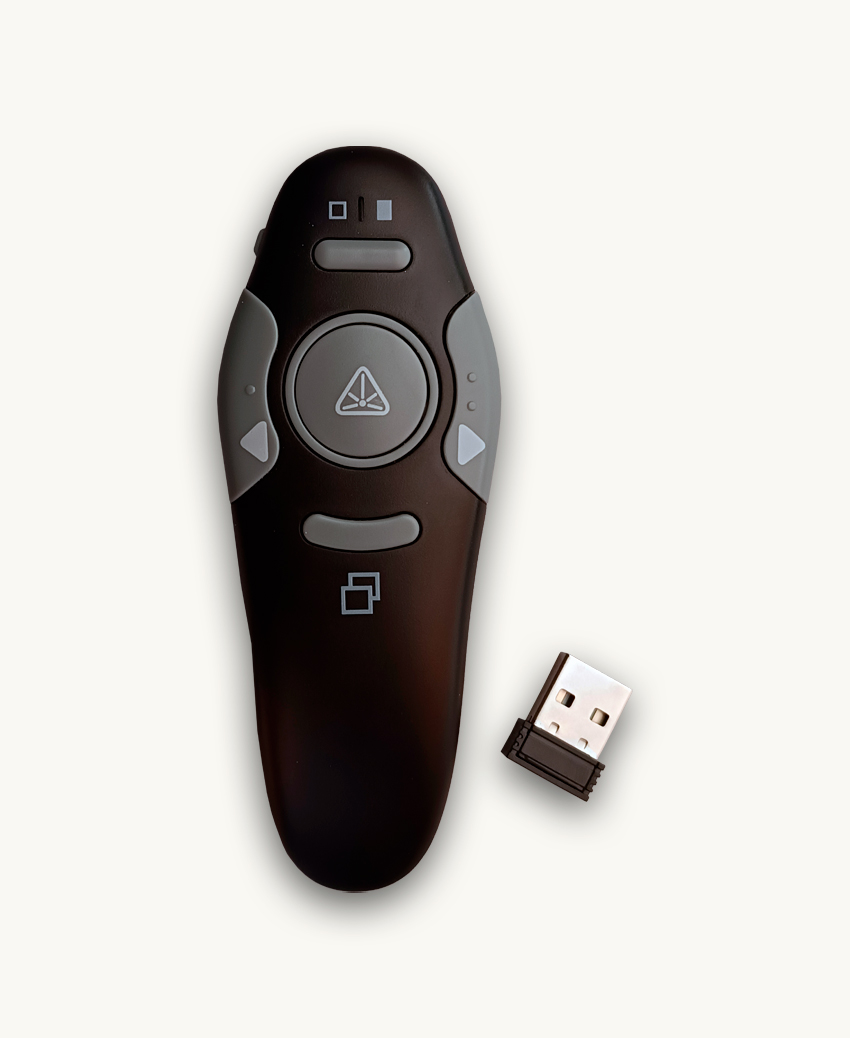این پرزنتر از دانگل USB فلزی با اتصال Plug & Play استفاده میکند؛ یعنی بدون نیاز به نصب نرمافزار یا درایور، فقط کافی است دانگل را به سیستم وصل کنید تا پرزنتر آماده استفاده شود. بُرد ارتباطی آن تا حدود 20 متر (بسته به محیط) است و از فرکانس 2.4 گیگاهرتز برای ارتباط پایدار و بدون لگ بهره میبرد.