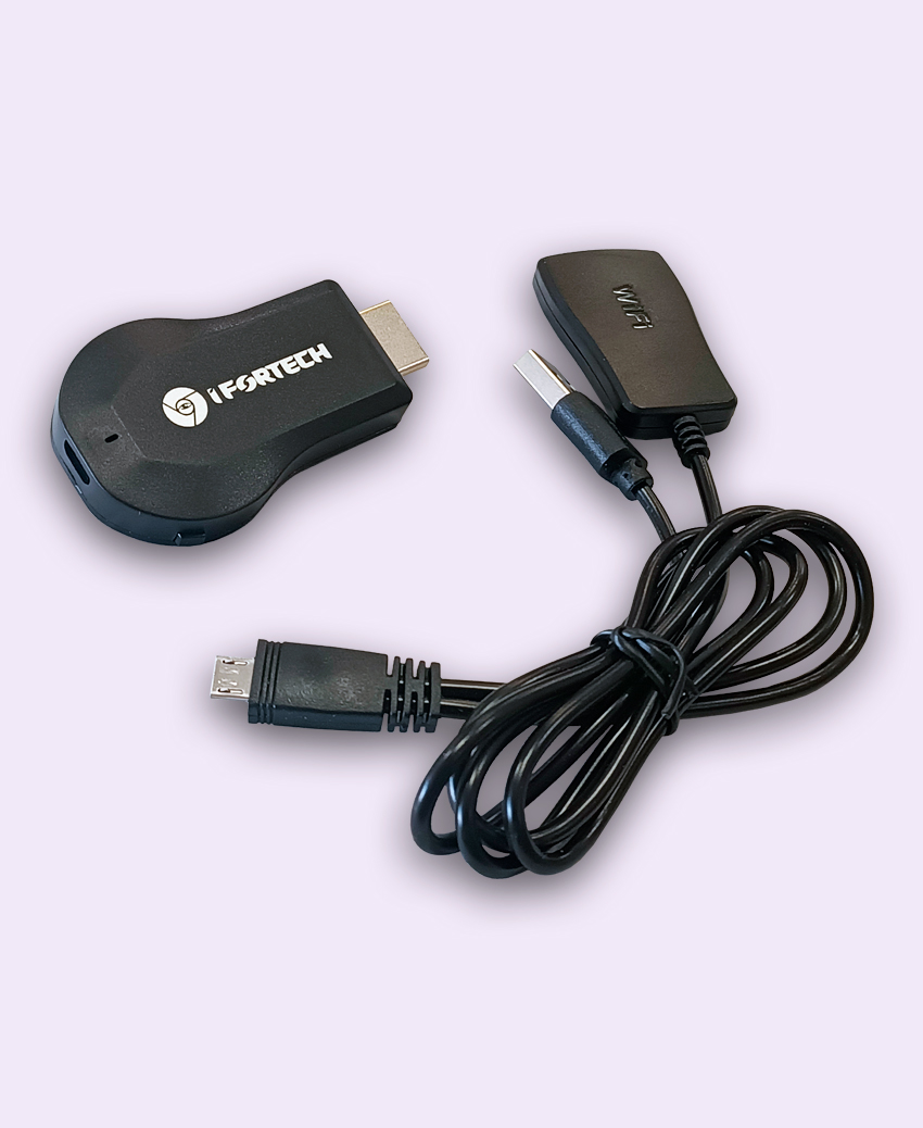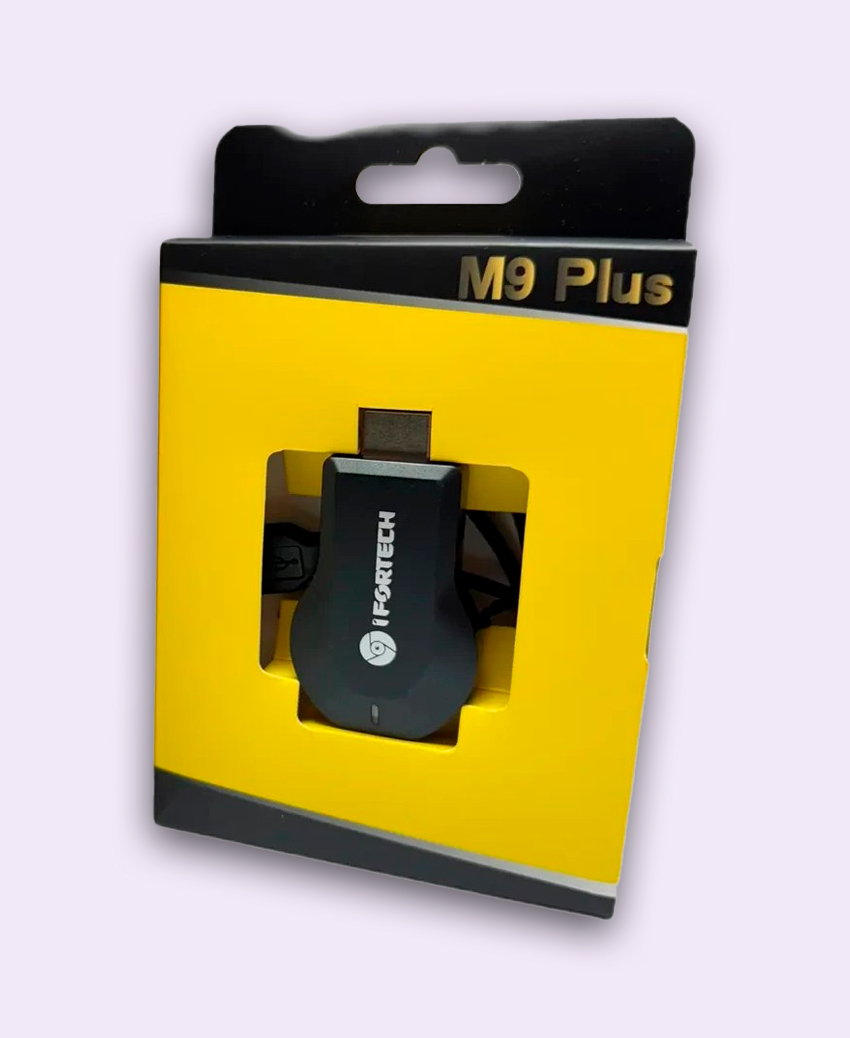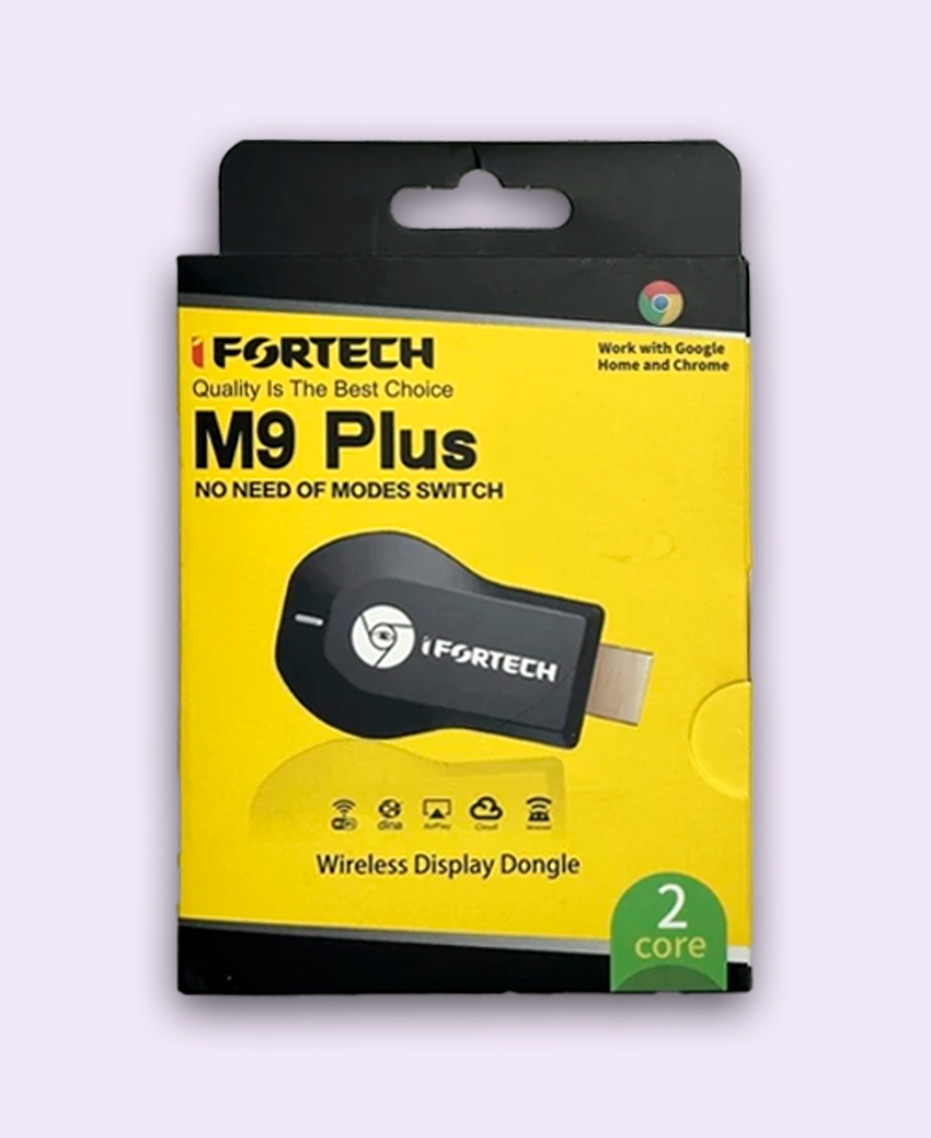 دانگل HDMI آی فورتک مدل iFORTECH M9 Plus یک گیرندۀ نمایش بی‌سیم (Wireless HDMI Display Receiver) است که به‌صورت دانگل از طریق پورت HDMI به تلویزیون، ویدئو پروژکتور یا مانیتور متصل می‌شود و تصویر گوشی، تبلت یا لپ‌تاپ را به‌صورت بی‌سیم روی صفحه بزرگ کَست می‌کند. این دستگاه برای مواقعی که نمی‌خواهید از کابل HDMI استفاده کنید و می‌خواهید سریع محتوای موبایل یا لپ‌تاپ را پخش کنید، راه‌حل ساده و ارزان‌قیمتی ارائه می‌دهد.