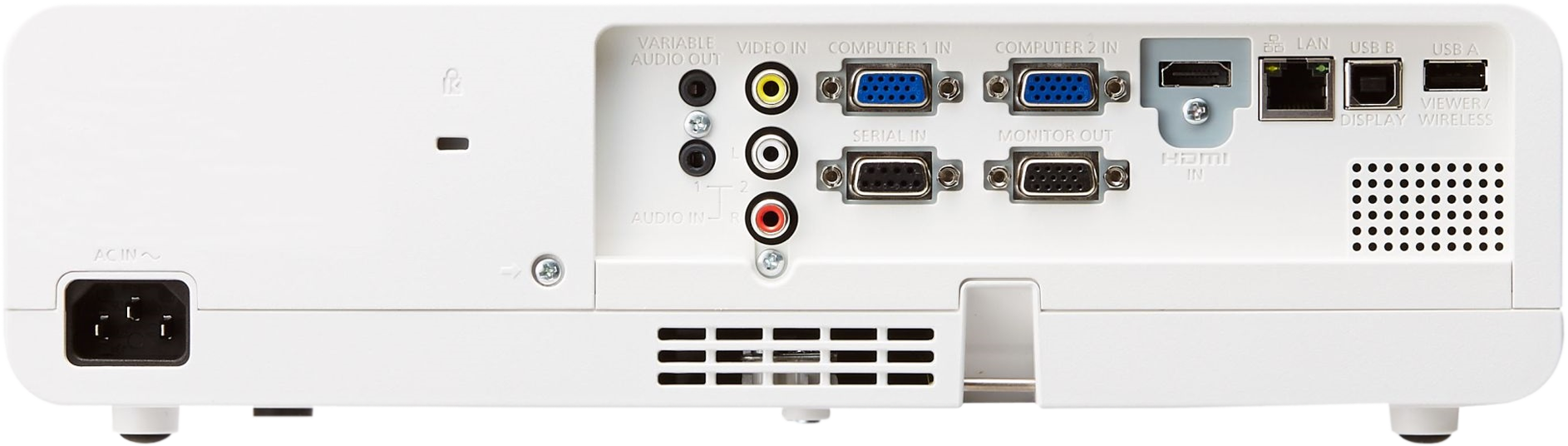پاناسونیک PT-LB423 دارای یک درگاه ورودی HDMI ، دو درگاه ورودی VGA ، یک درگاه خروجی VGA ، ورودی USB-A و USB-B ، ورودی تصویر Composite ، ورودی شبکه و ورودی و خروجی صدا می باشد. بنابراین اگر برای انتخاب پروژکتور، پورت های صدا و تصویر و تنوع آن ها برای شما اهمیت دارد ، PT-LB423 انتخابی ایده آل برای شماست.