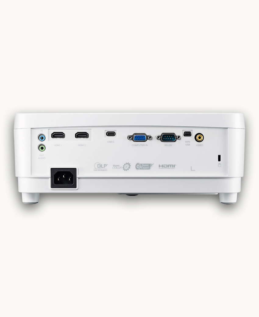 ورودیهای دستگاه در قسمت پشت بدنه قرار دارند و شامل دو درگاه HDMI، یک پورت USB Type-C، VGA، Audio In/Out و RS232 است. وجود پورت USB-C باعث میشود بتوان دستگاههای جدیدتر مانند لپتاپها، کنسولهای بازی یا گوشیهای هوشمند را مستقیماً به آن متصل کرد، ویژگیای که در بسیاری از مدلهای قدیمیتر وجود ندارد.